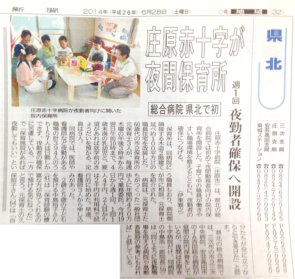 2015年4月、新たな保育事業として、庄原赤十字病院