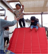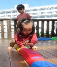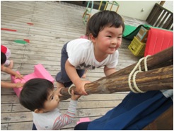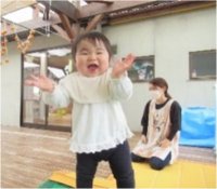 入所当初は涙の出ていた子も少しづつ大好きな先生ができ、戸外に出かけると笑顔いっぱいに遊びを楽しむ姿が見られるようになり始めました。 |