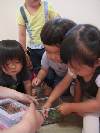 残暑が厳しく、なかなか戸外へ出ることが難しい日々が続きましたが、時折吹く風にようやく秋を感じるようになりました。また、草むらから聞こえてくる虫たちの合唱が秋の訪れを知らせてくれています。風が心地よく感じられる日には、戸外へ出て体を動かし、虫探しや木の実拾いなども楽しみたいと思います。 |