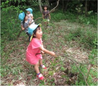 今年は例年になく早い梅雨明けとなり、あっという間に夏本番を迎えることになりました。その様な中、子ども達は暑さを吹き飛ばす勢いで、山遊びや戸外遊びを楽しんでいます。 |