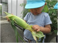 梅雨が上がり夏本番になりました。くま組が植えたきゅうりやズッキーニ、ミニトマトなどグングン大きくなり、収穫することができました。 |