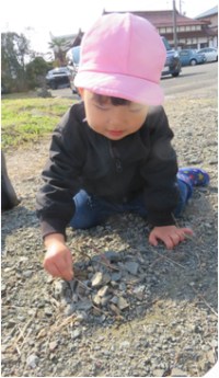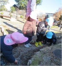 霜で外が真っ白になり、「雪?」と思わず尋ねたKちゃん。寒いときにしか見られないこうした自然との出会いも大切にしながら、今月も天気の良い日はお山や田んぼへ出かけていきたいと思います。 |