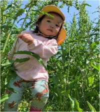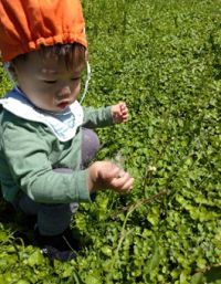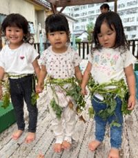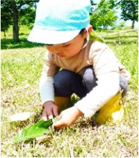 雨が降ると、田んぼやお山の草が青々と生い茂り、あっという間に子ども達の膝丈を追い越します。そんな草むらの中を大きく足を上げ、力強く前へと進んでいく子ども達。足を踏み入れるたびに、ピョンピョンと小さなバッタが飛び跳ね、ひょっこりと現れるカエルに歓声を上げ、「まって!まって!」と追いかけています。また、草むらの中にはタンポポやヘビイチゴ、カラスノエンドウなどが生えており、お気に入りの植物を収穫して料理にしたり、お店屋さんごっこ、筒や木を動物に見立てて食べさせてあげたりと、自由な発想で思い思いに好きな遊びを楽しむ子ども達。これから、じめじめとした梅雨がやってきますが、子ども達はきっと次の出会いと発見に胸を弾ませることでしょう。 |