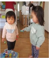新しい友だち9名を迎え、1歳児6名、2歳児9名、 計15名で新年度がスタートしました。4月20日には、0歳児1名・1歳児1名の入所があり17名になります。コロナウイルス感染防止のため「入園を祝う会」を行えないままに新年度のスタートとなりました。 |