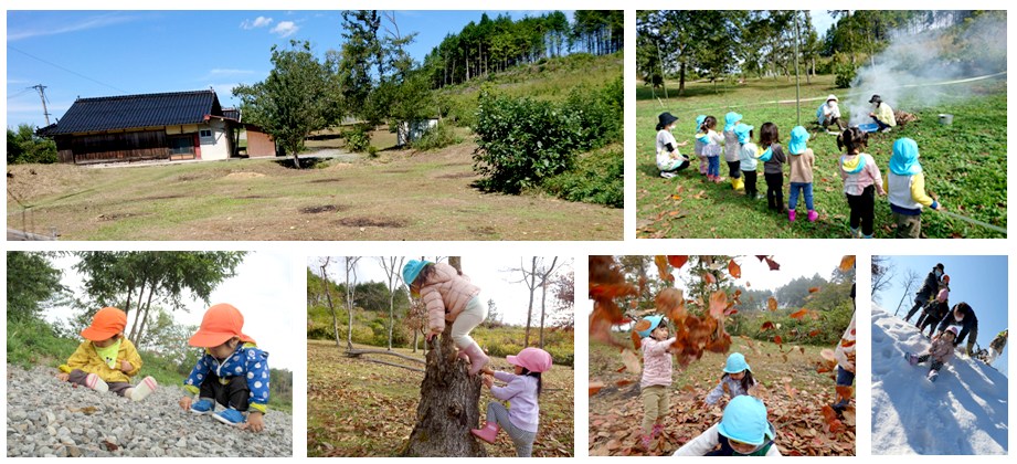 サテライト保育所「タンネのお山」は、周りが自然豊かな古民家を拠点に、四季折々の山での遊びを大いに楽しみます。